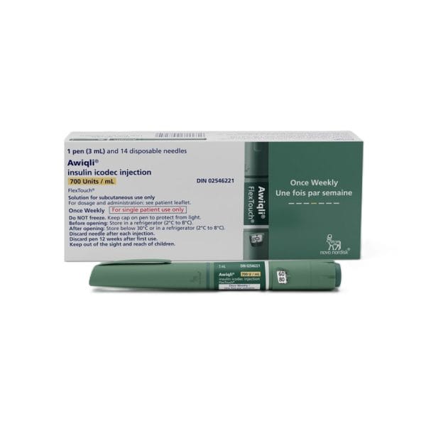 Awiqli FlexTouch prefilled pen is supplied as a disposable, multi-dose injection pen. This weekly basal insulin is commonly listed as 700 units/mL, but availability may vary by market. Some pharmacies may stock different pack sizes or presentations depending on supplier.